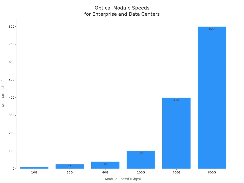 Du solltest wählen optische Empfängermodule Stellen Sie sicher, dass die Module zu Ihrem Projekt passen und mit Ihren bestehenden Systemen kompatibel sind. Wählen Sie den passenden Modultyp für Ihre Konfiguration. Hochwertige optische Module zeichnen sich durch spezielle Materialien und sorgfältige Verarbeitung aus. Dies trägt dazu bei, Verzögerungen zu minimieren und ein starkes Signal zu gewährleisten. So schützen Sie Ihr Netzwerk vor Bitfehlern und Paketverlusten. Das richtige optische Empfängermodul bietet optimale Leistung und stabile Verbindungen.