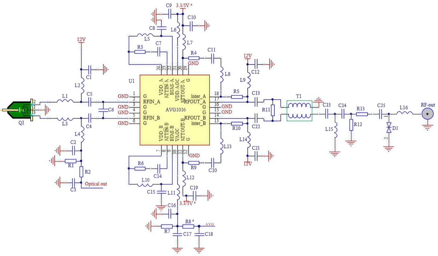 Der AVG1016 von Sanland ist ein Verstärker mit variabler Verstärkung Spannungsgesteuertes Dämpfungsglied. Der Verstärker ist hoch Linearität und geringes Rauschen werden durch die Verwendung von 0,5 µm erreicht GaAs E-pHEMT-Prozess. Es ist in einer Miniatur 4,0 x untergebracht 4,0-mm-24-Pin-Quad-Flat-Non-Lead-Gehäuse (QFN). Es ist Entwickelt für den optimalen Einsatz von 45 MHz bis 1000 MHz. Die kompakte Stellfläche und das niedrige Profil gepaart mit hoher Verstärkung und hohe Linearität machen den AVG1018 zur idealen Wahl als Verstärker für CATV-Netzwerke und FTTH-Netzwerke.